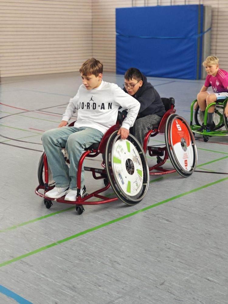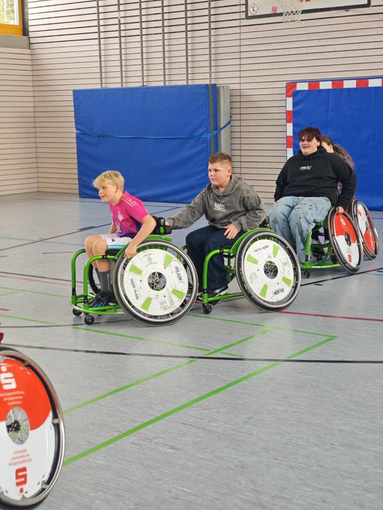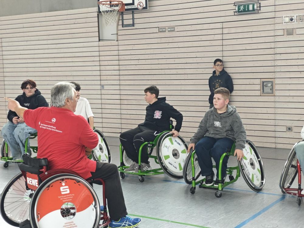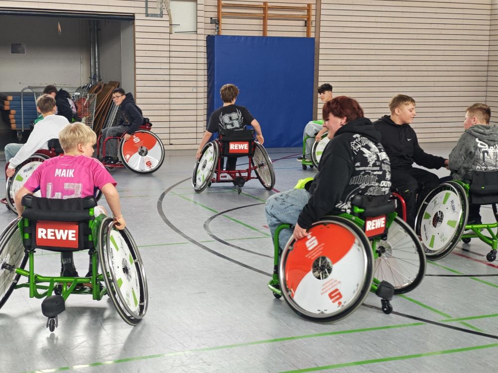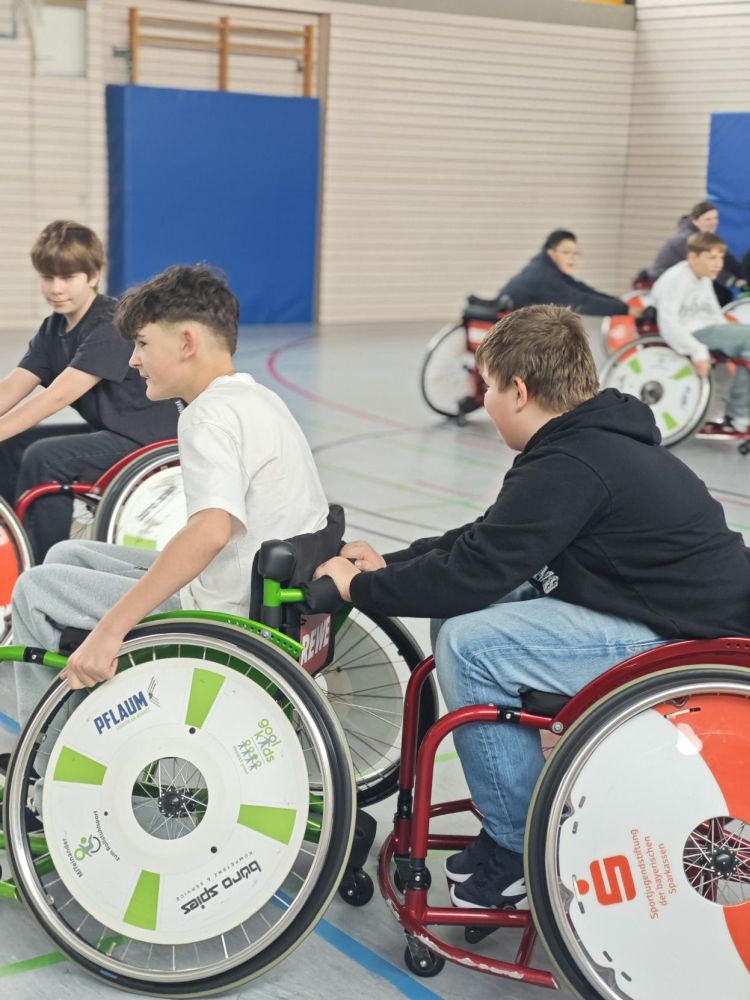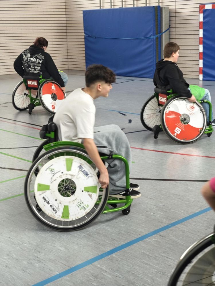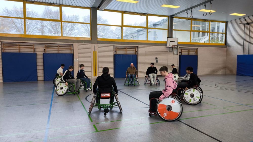 Unter Anleitung externer Fachkräfte probierten die Jugendlichen der Klassen 7 bis 9 verschiedene Spiele im Rollstuhl aus und sammelten erste Erfahrungen im Rollstuhlbasketball. Dabei standen Teamgeist, Fairness, gegenseitige Rücksichtnahme und natürlich Spaß im Mittelpunkt.